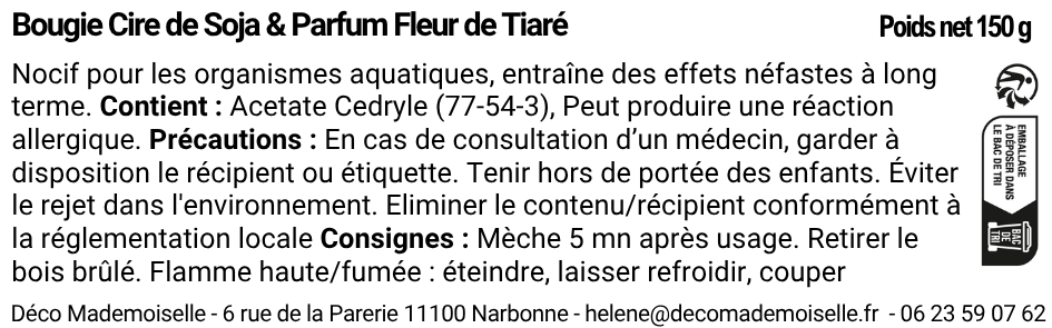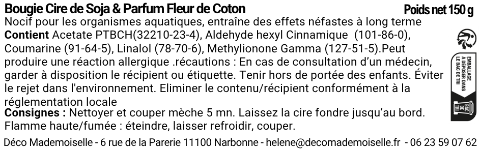 11. Précaution avec les mèches en bois : Les mèches en bois et certains parfums peuvent parfois produire une fumée noire, associer la cire et laisser un dépôt noir sur le contenant. Cela n’affecte toutefois pas la combustion de la bougie.